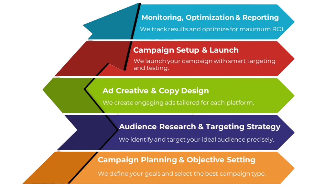 Success with Meta Ads starts with a clear strategy, not guesswork. We begin by understanding your business goals and audience, then craft tailored campaigns using precise targeting, compelling creatives, and smart bidding techniques. From launch to optimization, we continuously monitor performance and adjust in real time to ensure your ads drive real results, whether that’s leads, sales, or brand growth. Every step is data-driven, focused on maximizing ROI and turning scrolls into conversions.